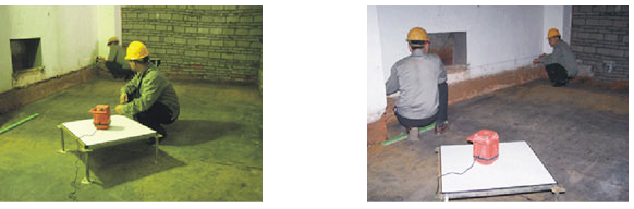 2、 观察房间的布局,安装好红外线水平扫描仪,在四周的墙面上打好半腰水平,然后找出房间的最低点和最高点,计算地面到板面的平均值(此平均值等于甲方要求的安装高度),计算并调节好支架高度。